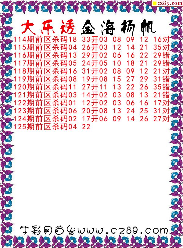 大乐透2025125期金海扬帆前区杀号图谜
